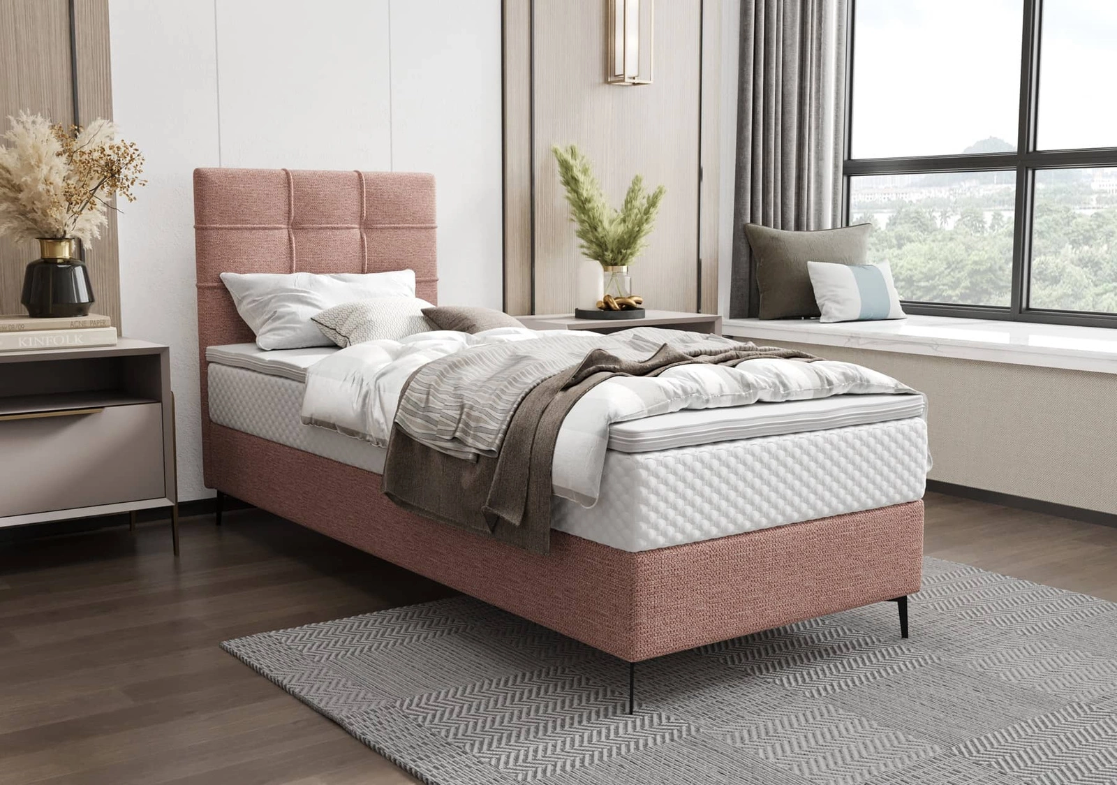 Łóżko kontynentalne Irvine 80x200 w kolorze różowym to idealny wybór do każdej sypialni lub pokoju młodzieżowego.