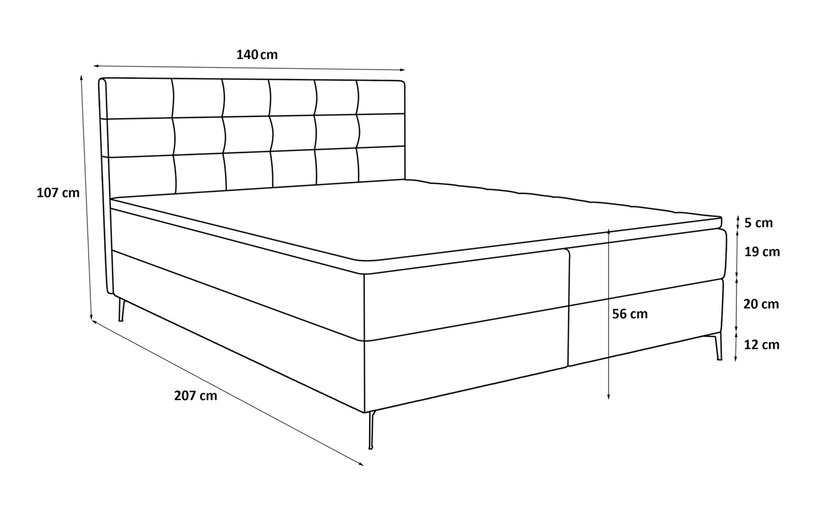 Standardowym wyposażeniem łóżka tapicerowanego Irvine są materace bonellowe. Materac bonellowy charakteryzuje się elastycznością powierzchniową sprawiającą, że materac jest odpowiedni dla osób w dużym przedziale wagowym. Materac zwieńczony został 5-centymetrowym topperem, który dodatkowo chroni jego powierzchnię przed zabrudzeniami i jednocześnie zwiększa komfort użytkowania łóżka.
