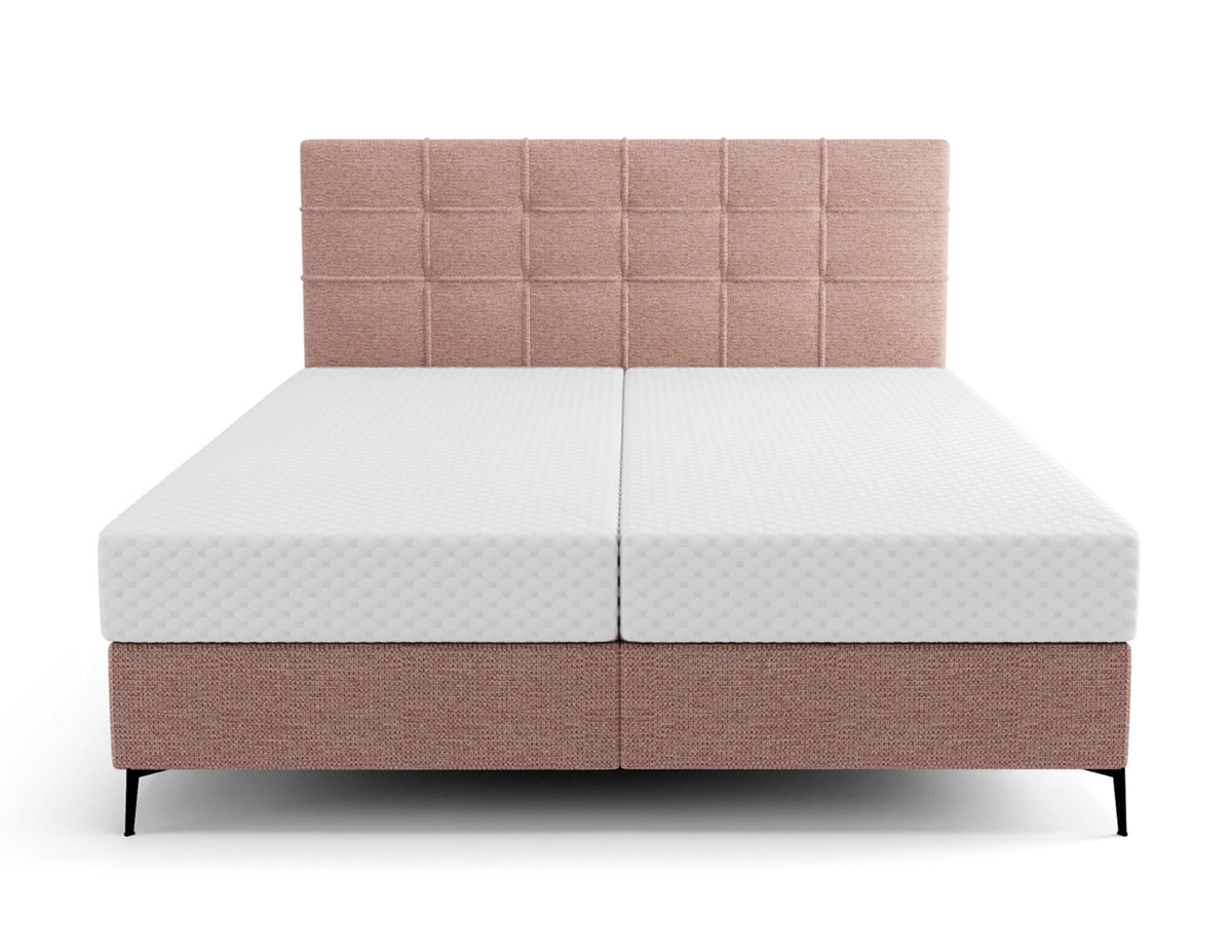 Łóżko kontynentalne Irvine 140x200 różowe stylowe łóżko z pojemnikiem na pościel i wysokim wezgłowiem zachwyca eleganckim designem