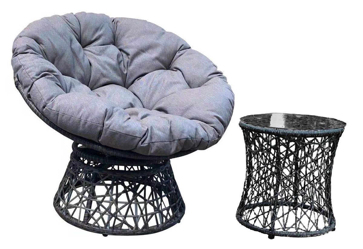 Fotel ogrodowy Twist szary obrotowy fotel do ogrodowej strefy wypoczynku fotel ze stolikiem idealny do wnętrza domu