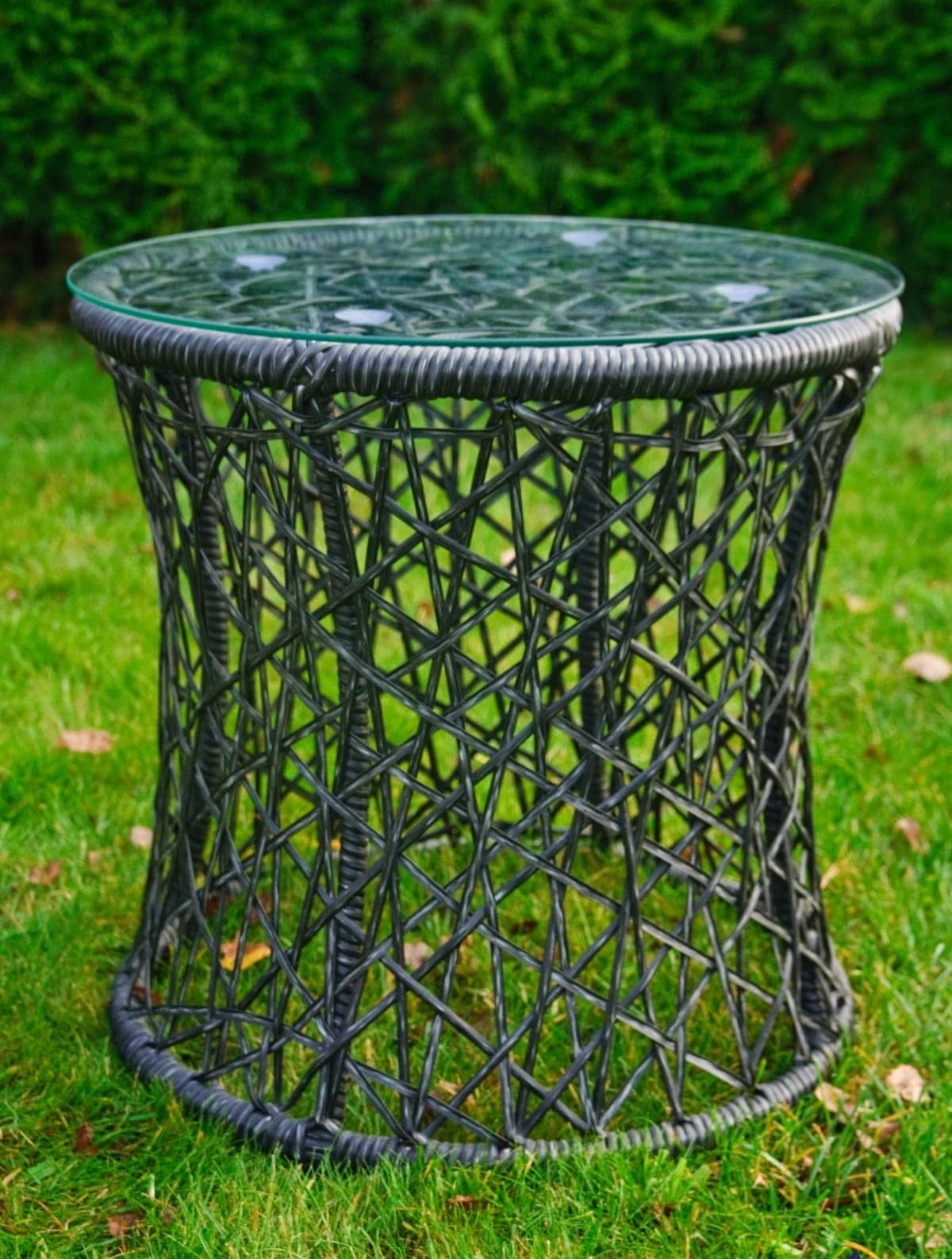 Dodatkowym atutem zestawu mebli ogrodowych jest praktyczny stolik. Blat stolika wykończony został bezpiecznym szkłem hartowanym o grubości 5mm. Stolik doskonale dopełni zestaw mebli, czyniąc go bardziej użytkowym oraz funkcjonalnym. Pikowana poduszka o grubości 15 cm w kolorze szarym obszyta niezwykle trwałą i odporną tkaniną. Materiał został pokryty warstwą teflonową, która gwarantuje plamoodporność, a także odporność na promieniowanie UV. Dzięki uniwersalnej budowie fotel ogrodowy może posłużyć jako fotel do ogrodu, fotel na taras, fotel na balkon, a także fotel do salonu lub fotel do pokoju młodzieżowego.