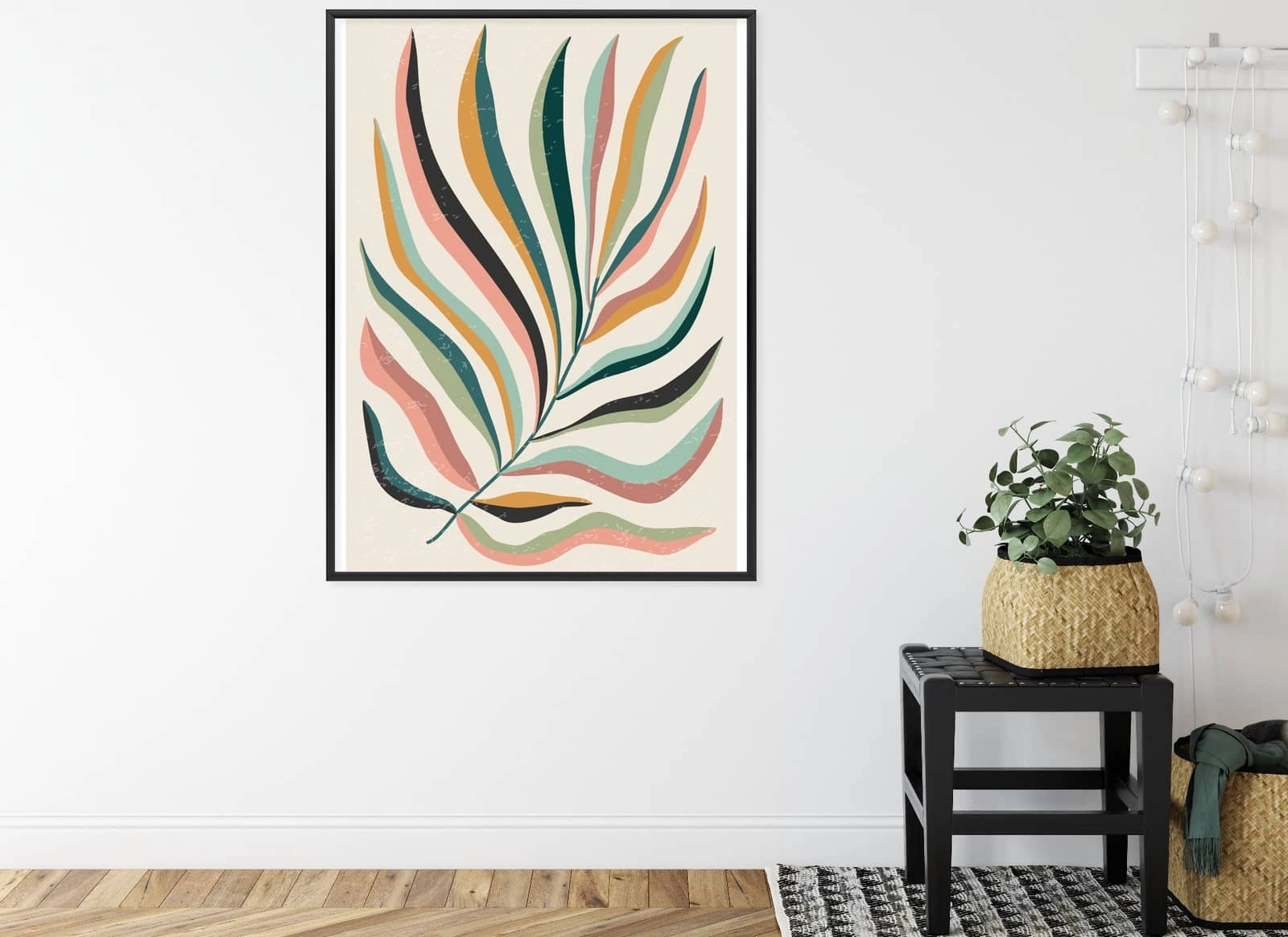 Plakat wielobarwny liść 70x100 plakat w ramie precyzyjny wydruk ze stylową grafiką doskonała dekoracja do salonu lub sypialni