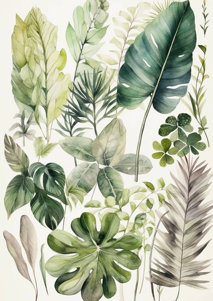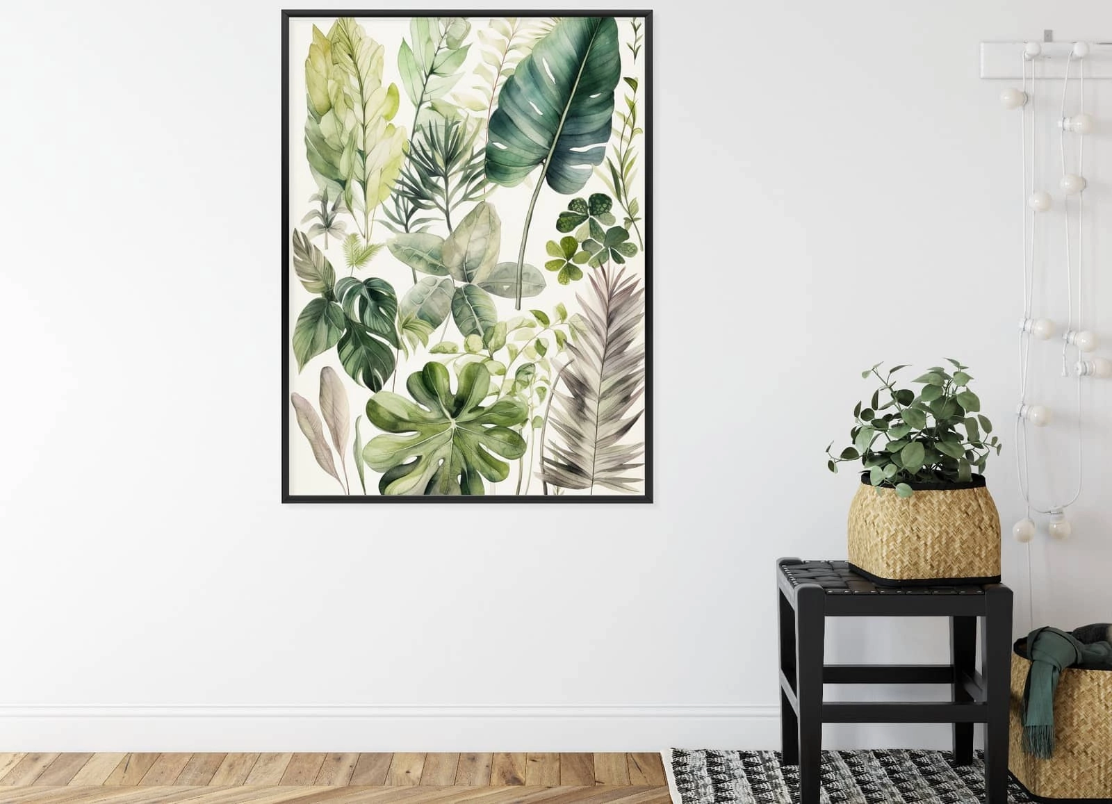 Plakat kolekcja zielonych liści 70x100 plakat w ramie precyzyjny wydruk ze stylową grafiką doskonała dekoracja do salonu lub sypialni