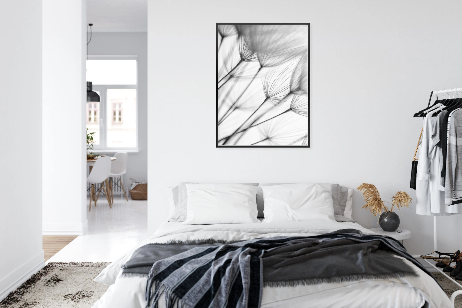 Plakat w ramie 70x100 z motywem czarno-białych dmuchawców to propozycja stylowej dekoracji, która zachwyci miłośników nowoczesnych aranżacji.