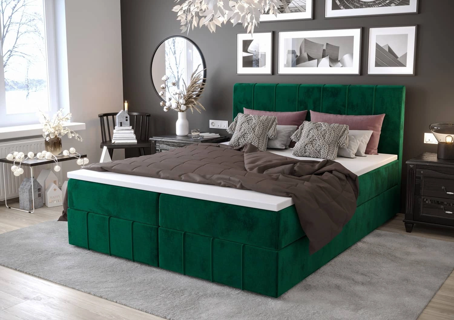 Łóżko kontynentalne Casey 180x200 w kolorze butelkowa zieleń to idealne rozwiązanie do sypialni urządzonej w stylu nowoczesnym, skandynawskim oraz klasycznym.