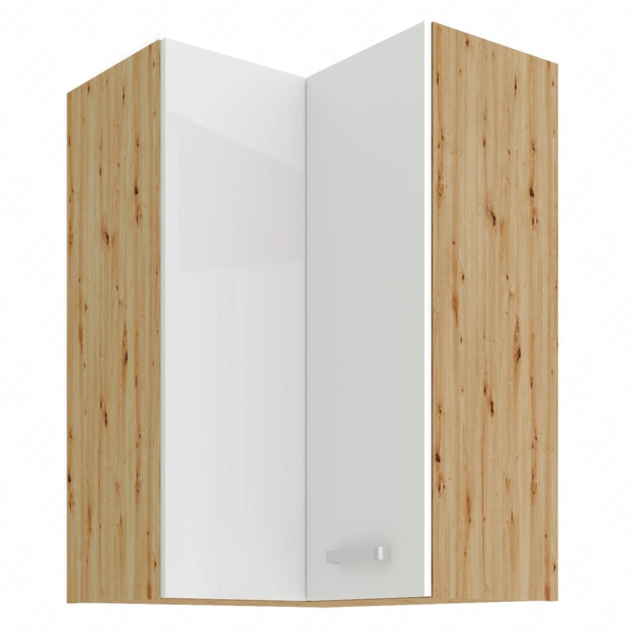 Szafka kuchenna narożna wisząca Alpine w kolorze biały / dąb artisan należy do kategorii mebli kuchennych modułowych, z których można utworzyć dowolne zestawy.