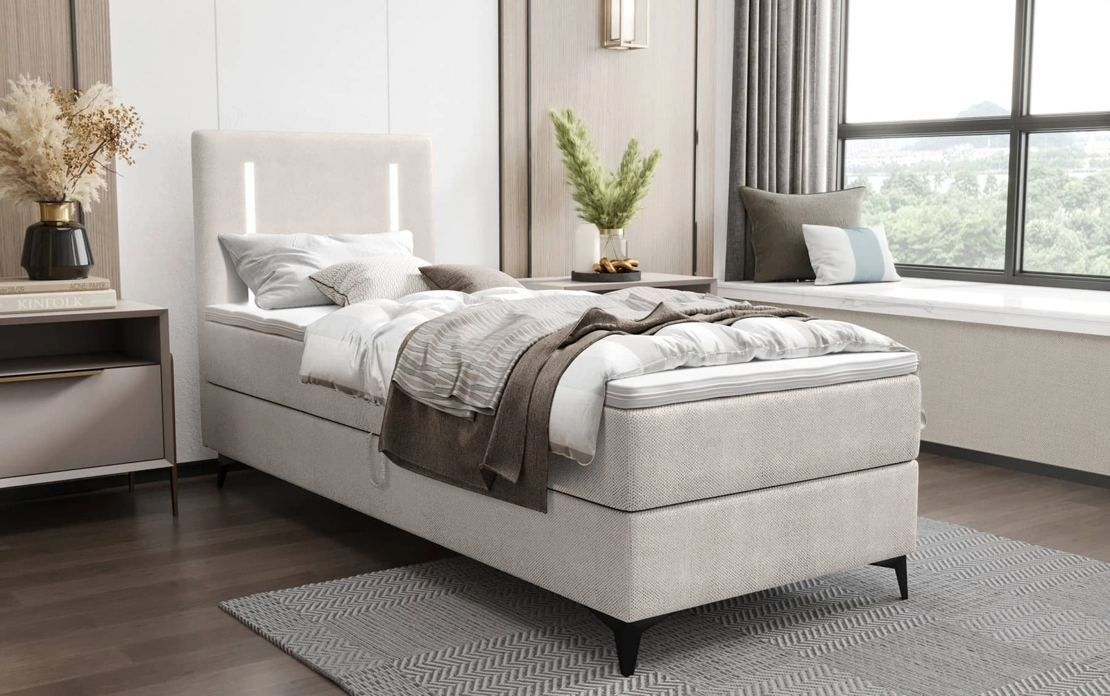 Łóżko kontynentalne Norco 80x200 w kolorze ecru to idealny wybór do każdej sypialni lub pokoju młodzieżowego.