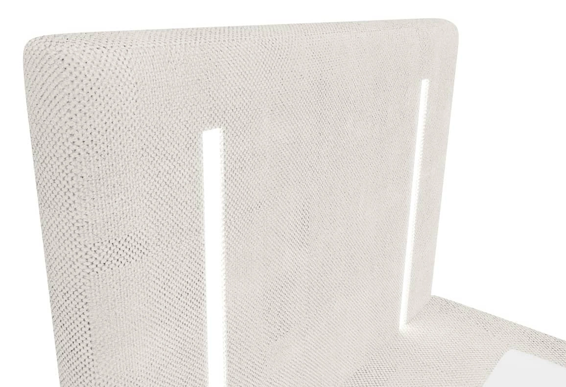 Minimalistyczna konstrukcja łóżka pokryta została strukturalną tkaniną Curio 02 o ciekawej powierzchni, która tworzy interesujący wzór. Wypustki, które wyglądem przypominają kłębkowe punkty nadają unikalnego charakteru, a jednocześnie zapewniają niezwykłą miękkość i ciepło w dotyku. Materiał wykazuje wysoką odpornością na rozciąganie oraz właściwości hydrofobowe zapobiegające wchłanianiu się cieczy. Dzięki temu łóżko kontynentalne przez długi czas będzie wyglądało estetycznie i elegancko. Tkanina jest także łatwa do utrzymania w czystości. Łóżko tapicerowane wykonane zostało z wysokiej jakości materiałów, które charakteryzują się odpornością na wpływ czynników zewnętrznych takich jak obicia mebla oraz różnego typu uderzenia.