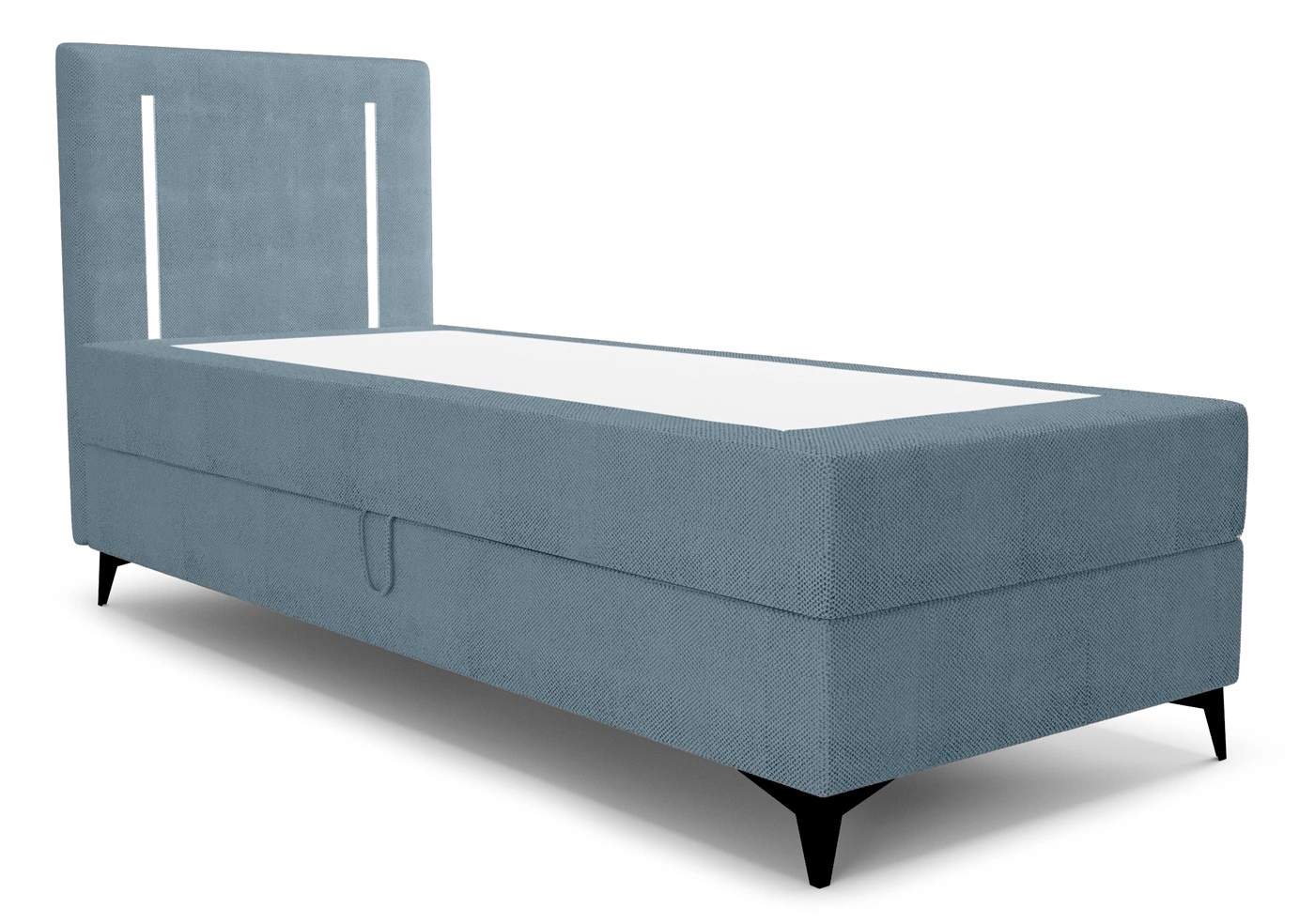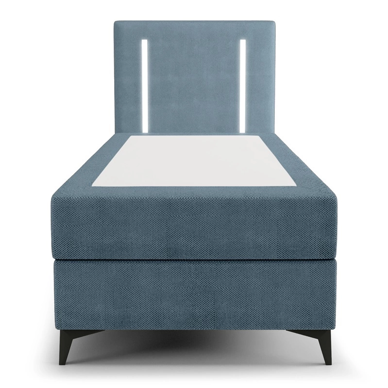 Łóżko kontynentalne Norco 80x200 niebieskie stylowe łóżko z pojemnikiem oświetlenie umieszczone w zagłówku nadaje wyjątkowości