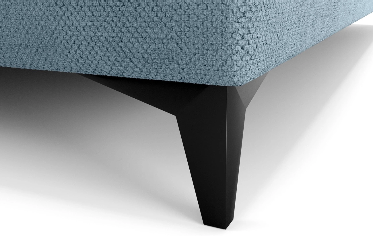 Minimalistyczna konstrukcja łóżka pokryta została strukturalną tkaniną Curio 74 o ciekawej powierzchni, która tworzy interesujący wzór. Wypustki, które wyglądem przypominają kłębkowe punkty nadają unikalnego charakteru, a jednocześnie zapewniają niezwykłą miękkość i ciepło w dotyku. Materiał wykazuje wysoką odpornością na rozciąganie oraz właściwości hydrofobowe zapobiegające wchłanianiu się cieczy. Dzięki temu łóżko kontynentalne przez długi czas będzie wyglądało estetycznie i elegancko. Tkanina jest także łatwa do utrzymania w czystości. Łóżko tapicerowane wykonane zostało z wysokiej jakości materiałów, które charakteryzują się odpornością na wpływ czynników zewnętrznych takich jak obicia mebla oraz różnego typu uderzenia.