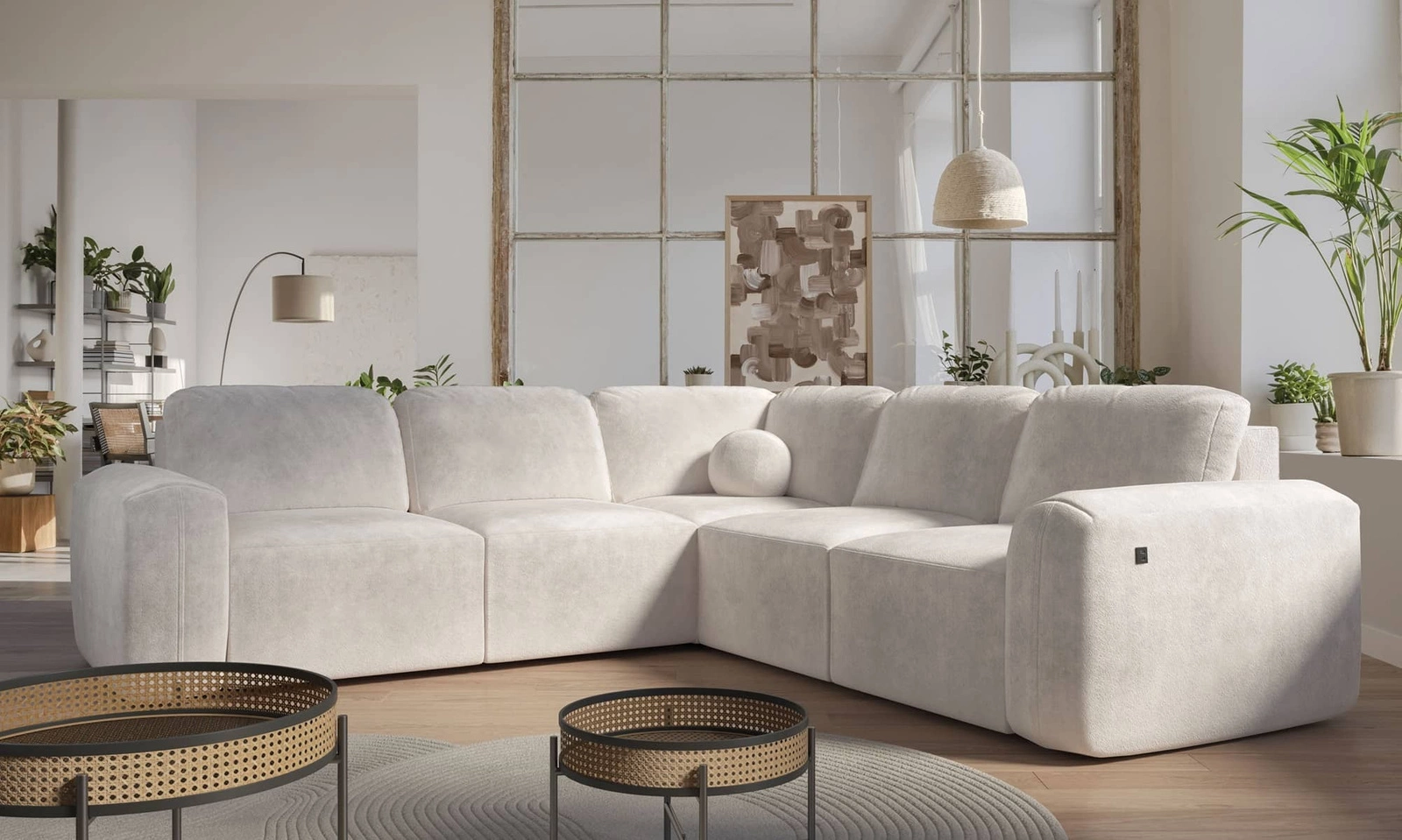 Narożnik Arbon III w kolorze beżowym to ciekawie prezentujący się mebel o eleganckim wykończeniu.