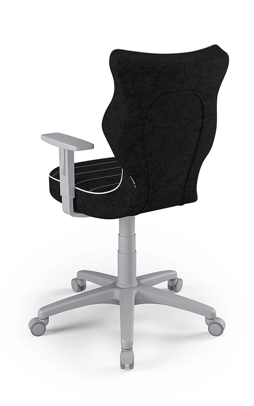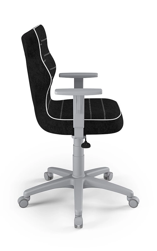 Krzesło do biurka Duo czarne idealne do wzrostu 146-176,5 cm profilowane siedzisko regulowane podłokietniki łatwo czyszcząca tkanina
