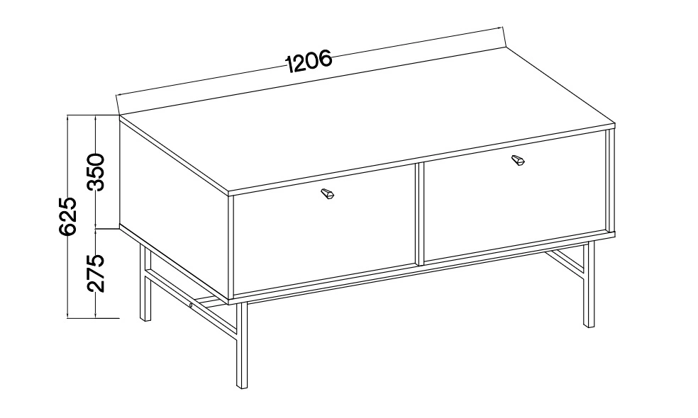 Szafka RTV wykonana została z wysokiej jakości płyty laminowanej o grubości 16mm, która charakteryzuje się odpornością na wpływ czynników zewnętrznych takich jak obicia, uderzenia i niefortunne zadrapania. Metalowy stelaż w złotym kolorze nadaje nietuzinkowości przy jednoczesnym utrzymaniu funkcjonalności.