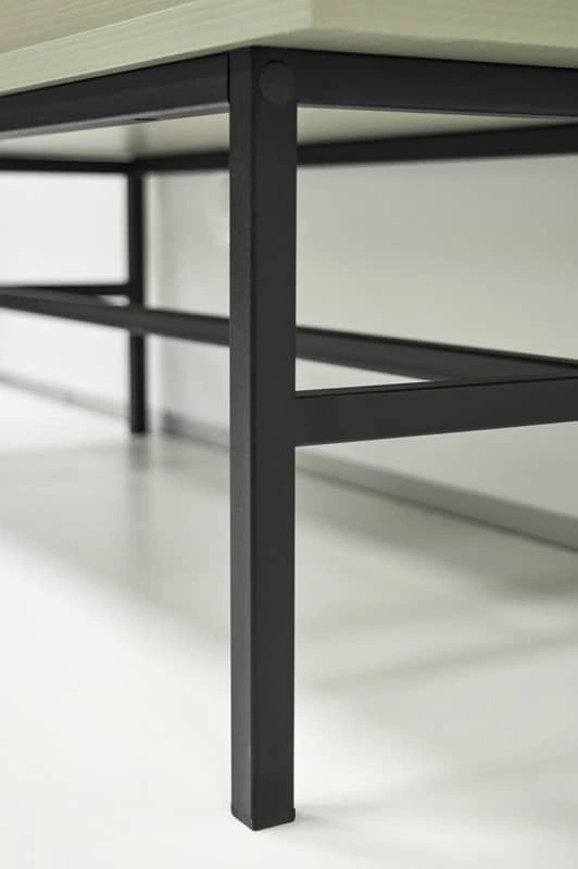 Komoda z szufladami wykonana została z wysokiej jakości płyty laminowanej o grubości 16mm, która charakteryzuje się odpornością na wpływ czynników zewnętrznych takich jak obicia, uderzenia i niefortunne zadrapania. Praktyczne, otwarte półki pozwolą wyeksponować dodatki stanowiące dekorację salonu. Metalowy stelaż w czarnym kolorze nadaje nietuzinkowości przy jednoczesnym utrzymaniu funkcjonalności.