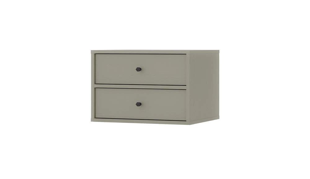 Szafka nocna wisząca Kioto IV eukaliptus z szufladami idealna szafka do sypialni o subtelnym wykończeniu metalowe czarne uchwyty