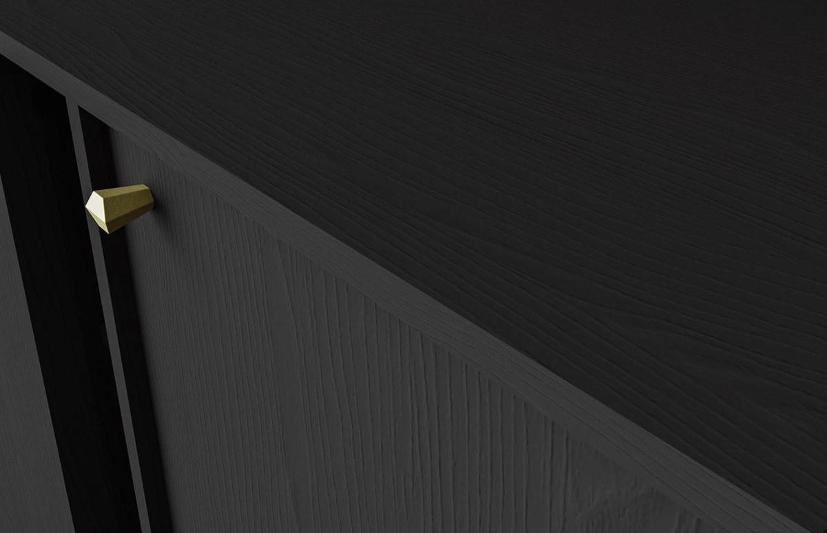 Komoda Kioto to zachwycający mebel o szczególnym i niepowtarzalnym charakterze. Niezwykłe połączenie grafitowego w ciemnym odcieniu ze złotymi uchwytami sprawia, że całość prezentuje się subtelnie oraz bardzo stylowo. Cofnięte względem korpusu fronty nadają finezji i elegancji dodatkowo tworząc efektowną dekorację. Komody z kolekcji Kioto to wyjątkowy projekt, który swoją formą i designem idealnie wpisuje się w aranżacje w stylu japońskim oraz nowoczesnym.