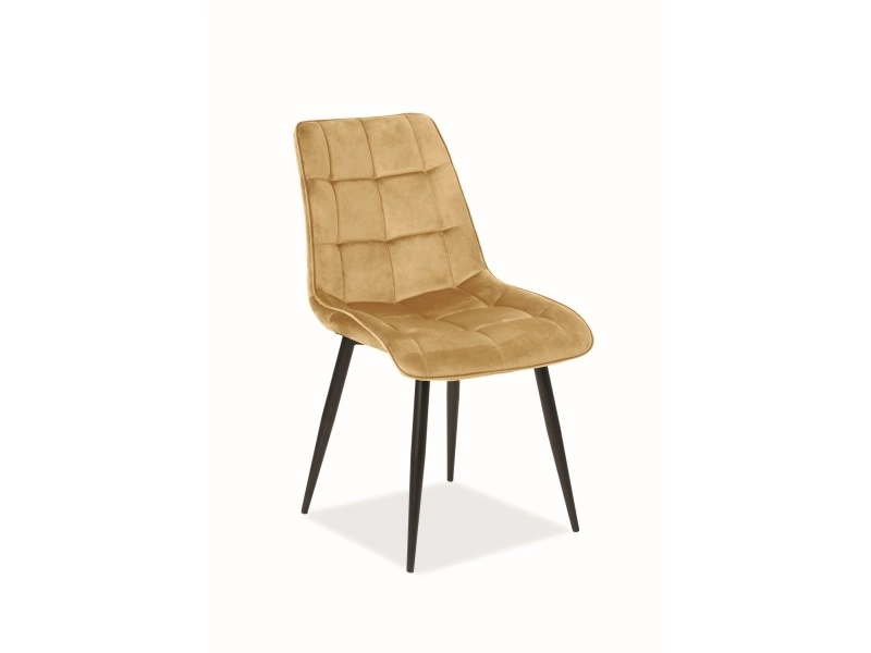 - Krzesło tapicerowane Chic to przepis na eleganckie wnętrze w Twoim domu! Nowoczesne krzesło ma metalowe, czarne nogi w kształcie stożka. Dekoracyjne pikowane nadaje niepowtarzalnego charakteru. Aksamitna, połyskująca tkanina.