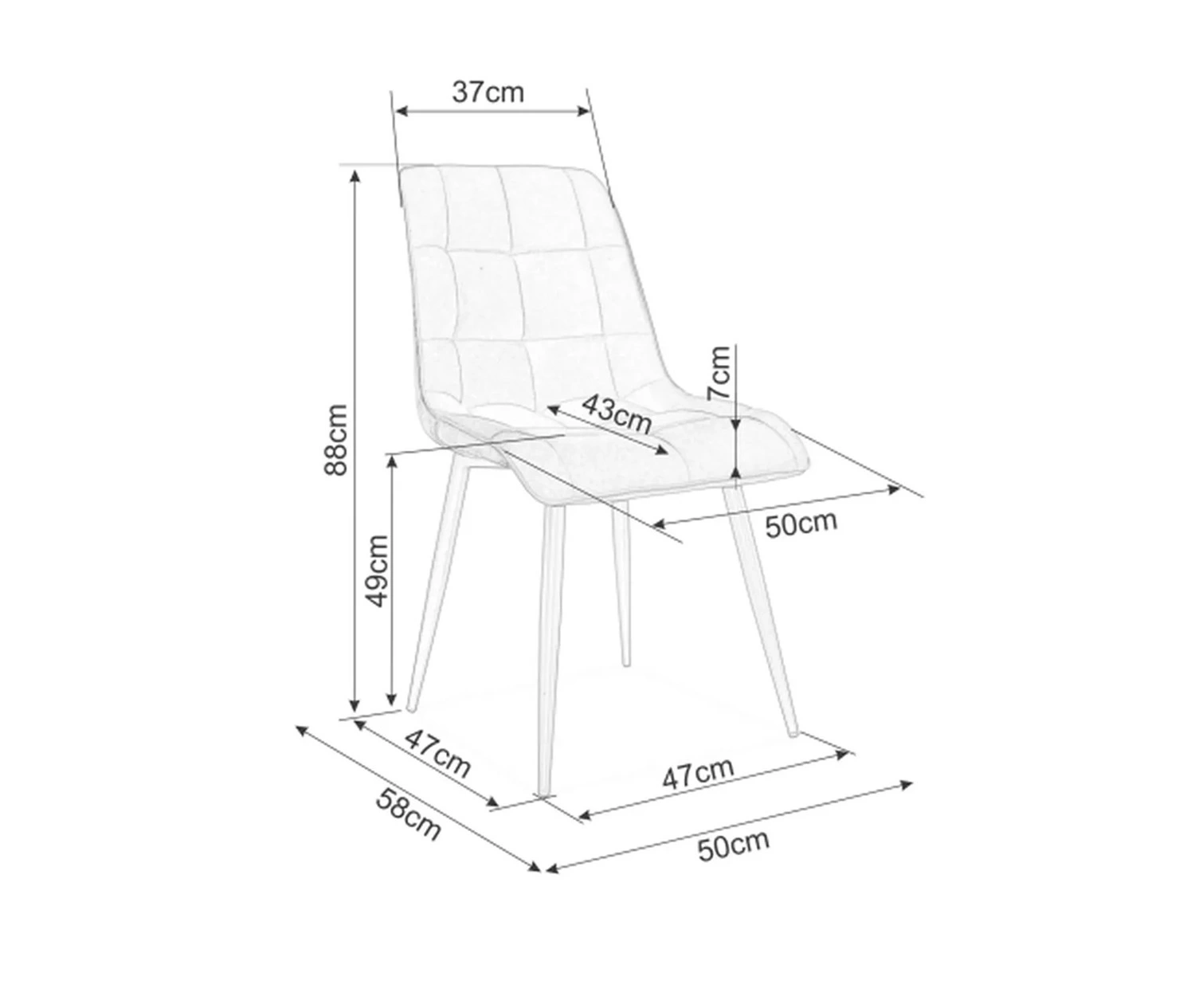 - Krzesło tapicerowane Chic to przepis na eleganckie wnętrze w Twoim domu! Nowoczesne krzesło ma metalowe, czarne nogi w kształcie stożka. Dekoracyjne pikowane nadaje niepowtarzalnego charakteru. Aksamitna, połyskująca tkanina.