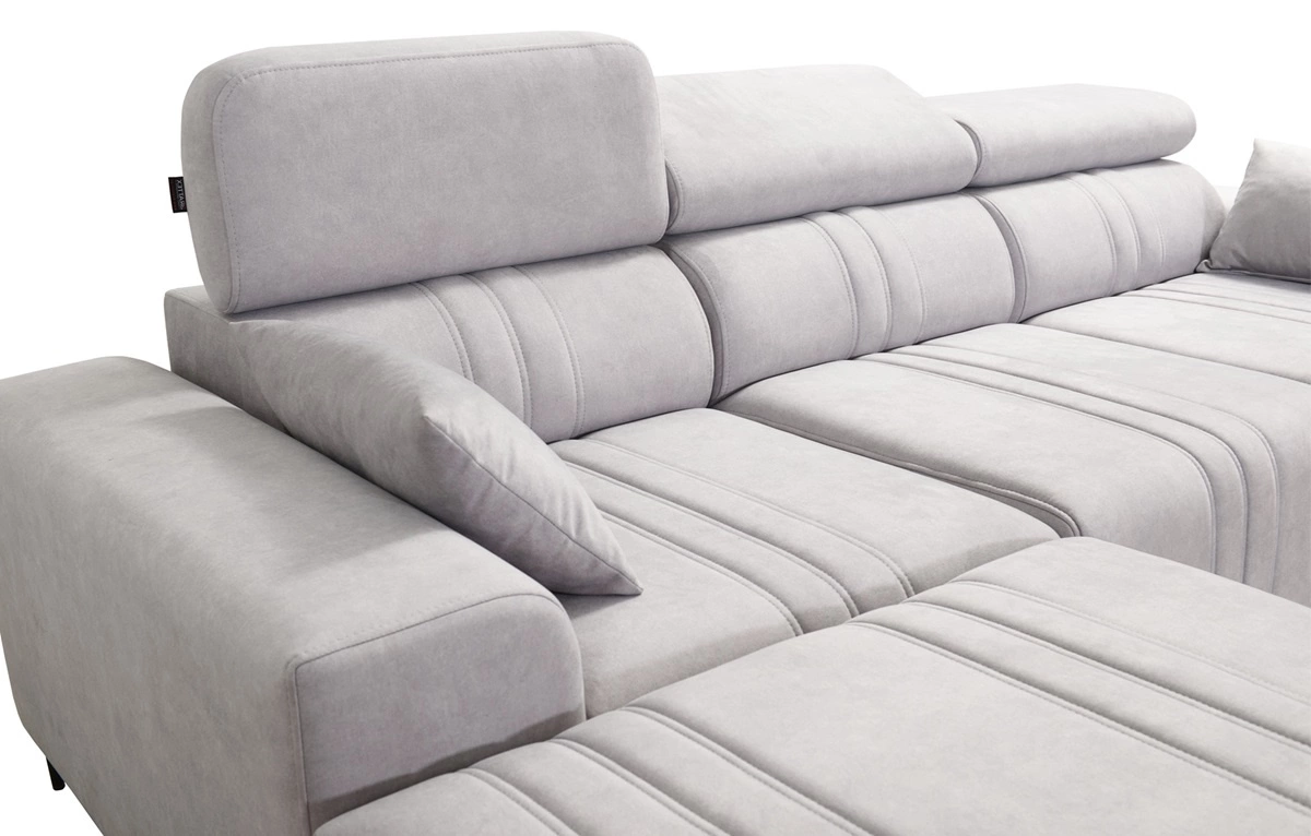Narożnik Castel w kolorze szary brąz z regulowanymi zagłówkami to niezwykle elegancki mebel o ciekawym wykończeniu.