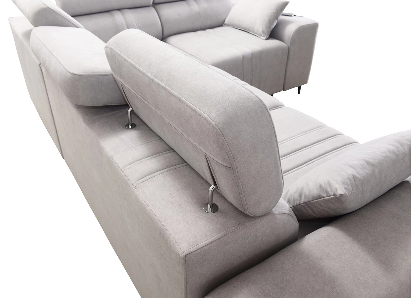 Narożnik Castel II w kolorze szary brąz z regulowanymi zagłówkami to niezwykle elegancki mebel o ciekawym wykończeniu.
