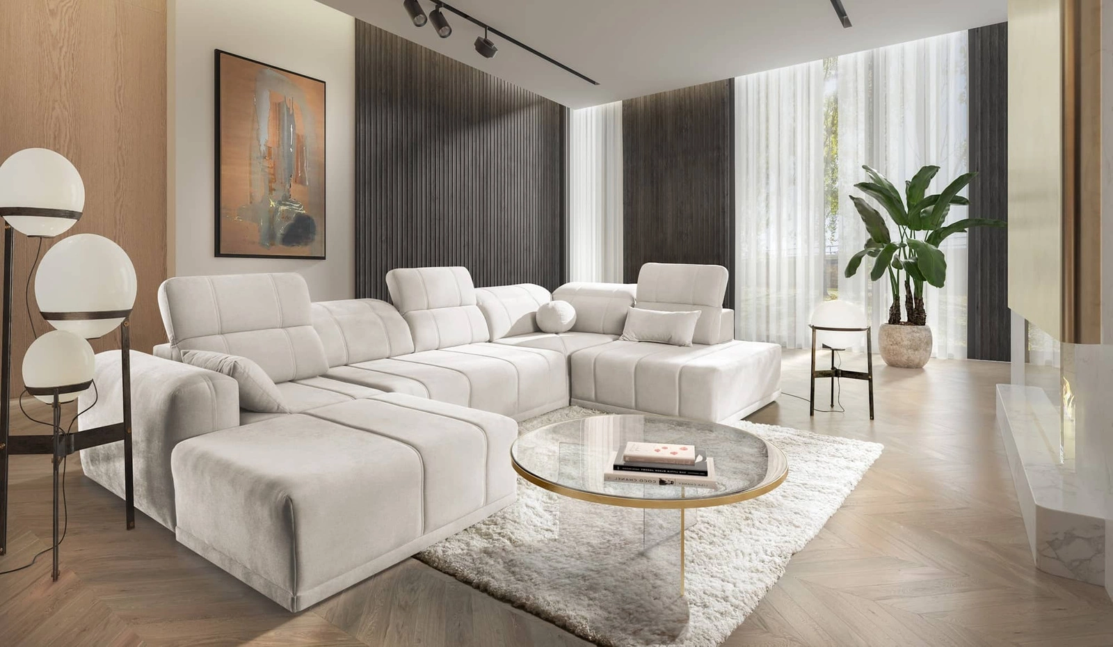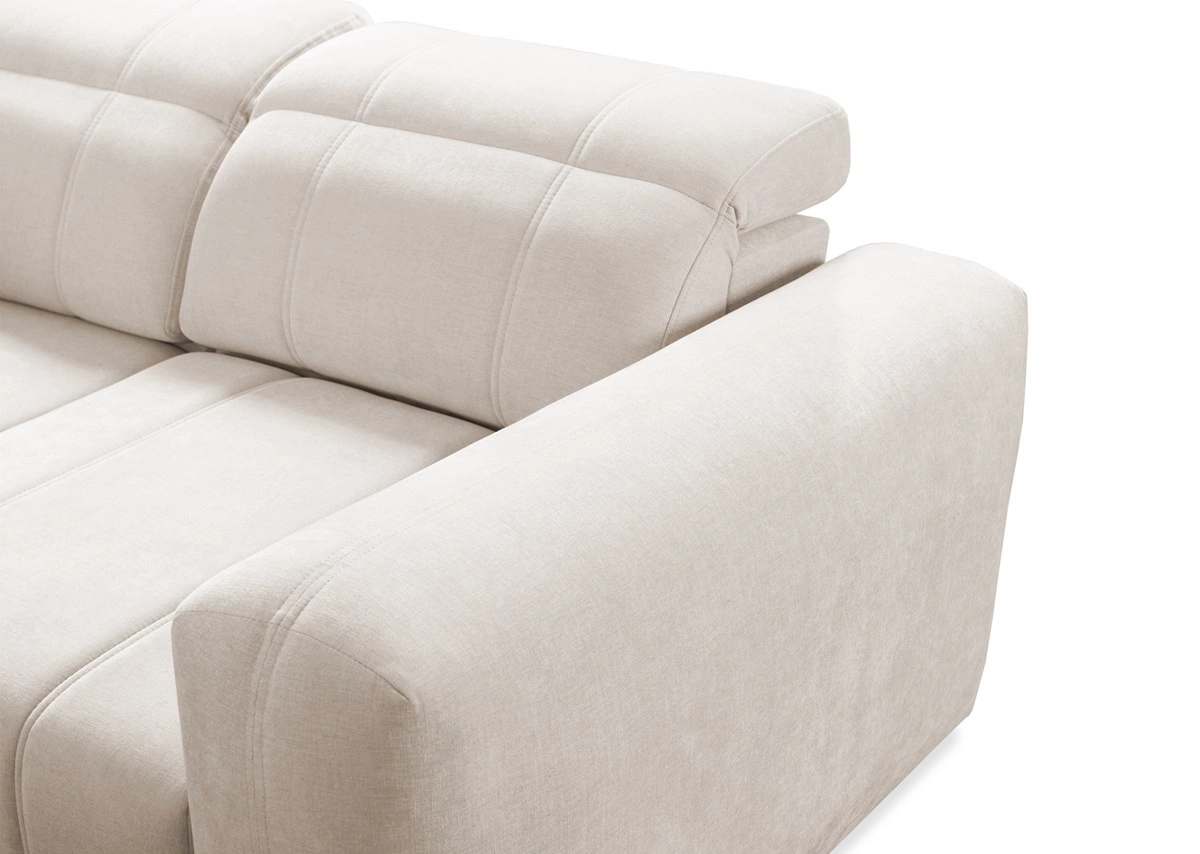 Narożnik z funkcją spania Cetara VI kremowy lewostronny komfortowy i stylowy narożnik rozkładany z przesuwanymi oparciami