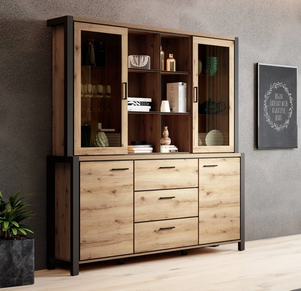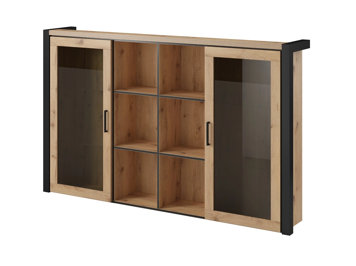 Nadstawka jest skonstruowana z 2 drzwi oraz otwartych półek. Wnętrze nadstawki częściowo wyposażono także w szklane półki z wytrzymałego szkła hartowanego. Ciepłe wybarwienie dębu nada pomieszczeniu lekkości i przytulnego klimatu, dzięki czemu nadstawki szklane z kolekcji Aktiv doskonale sprawdzą się w roli witryny do salonu, witryny do jadalni lub witryny na książki.