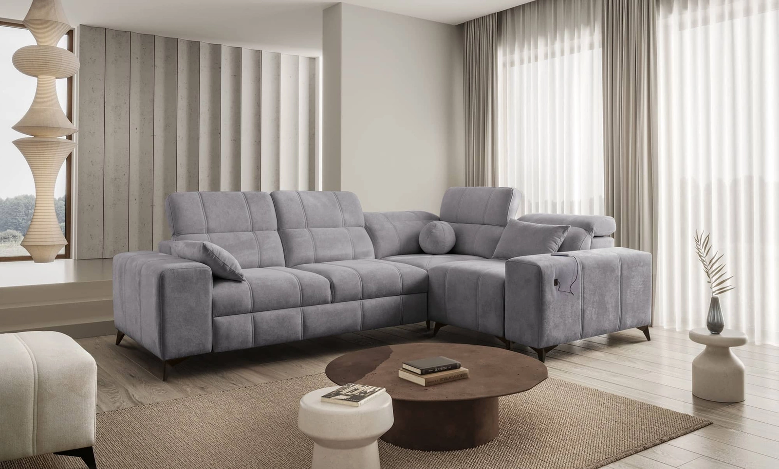 Narożnik Penejos II w kolorze jasny szary z regulowanymi zagłówkami to zachwycający mebel z gwarancją najwyższego komfortu i funkcjonalności.