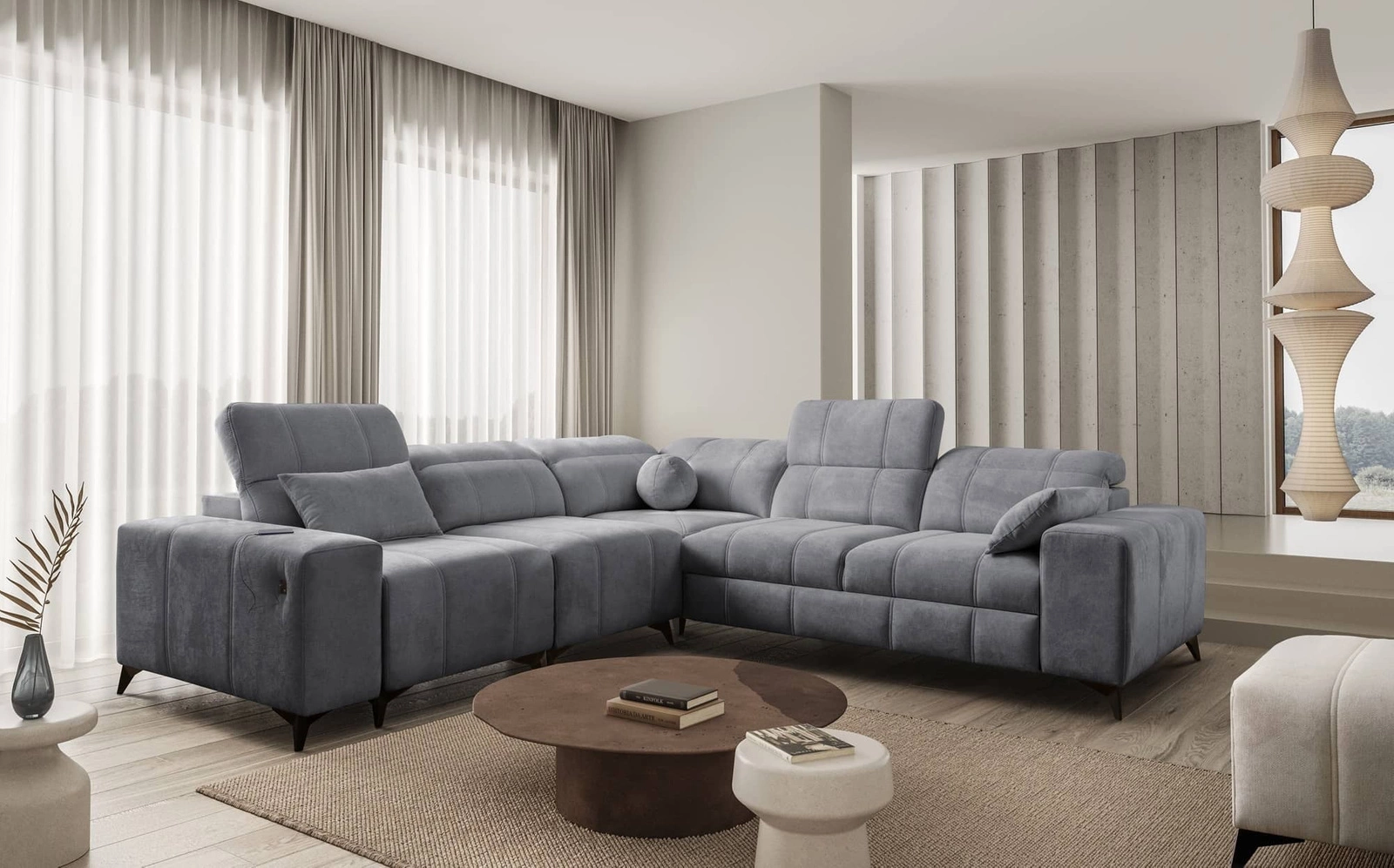 Narożnik Penejos III w kolorze szarym z regulowanymi zagłówkami to zachwycający mebel z gwarancją najwyższego komfortu i funkcjonalności.