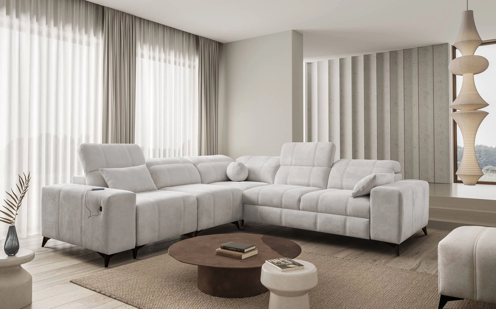 Narożnik Penejos III w kolorze szary popiel z regulowanymi zagłówkami to zachwycający mebel z gwarancją najwyższego komfortu i funkcjonalności.