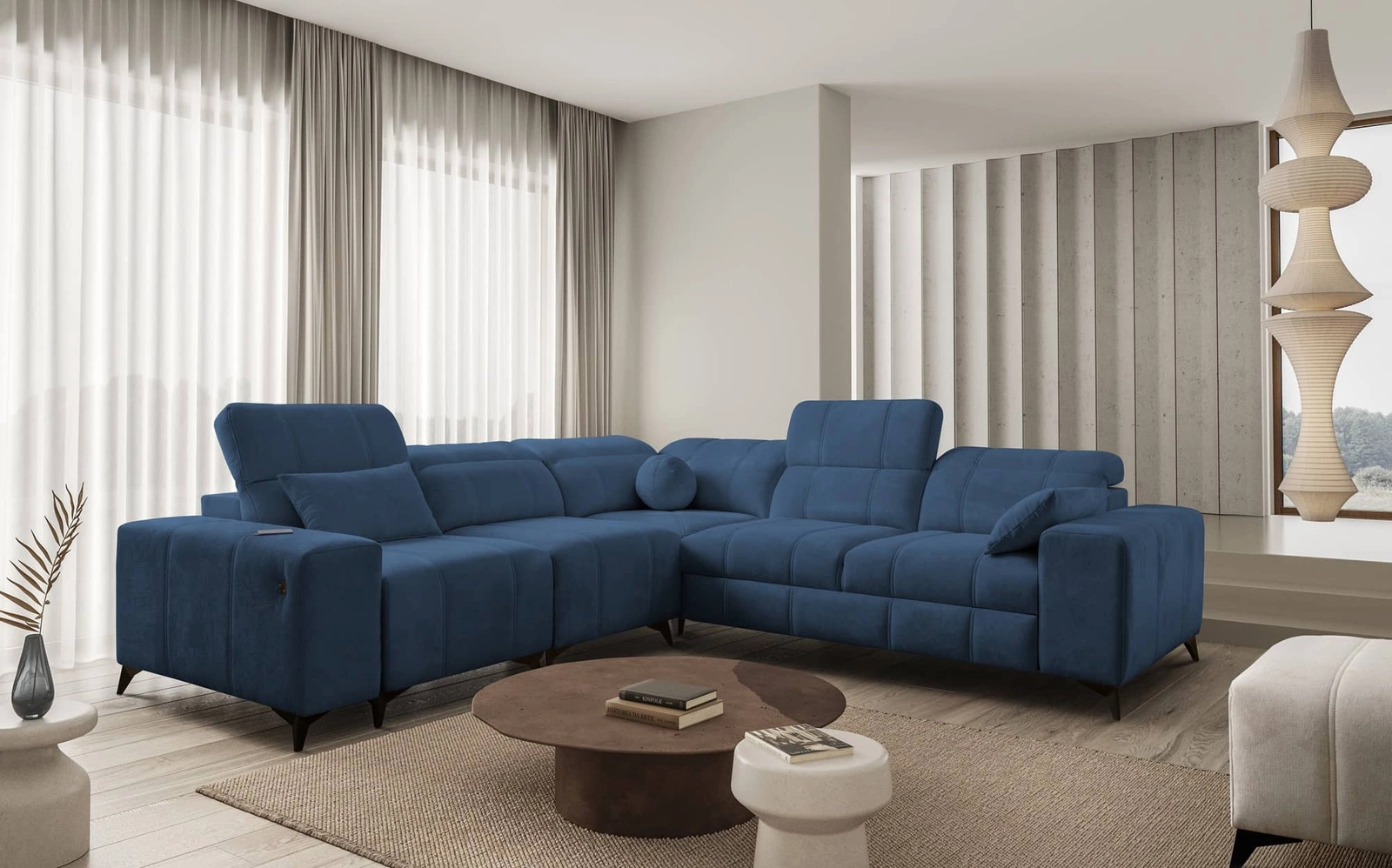 Narożnik Penejos III w kolorze niebieskim z regulowanymi zagłówkami to zachwycający mebel z gwarancją najwyższego komfortu i funkcjonalności.