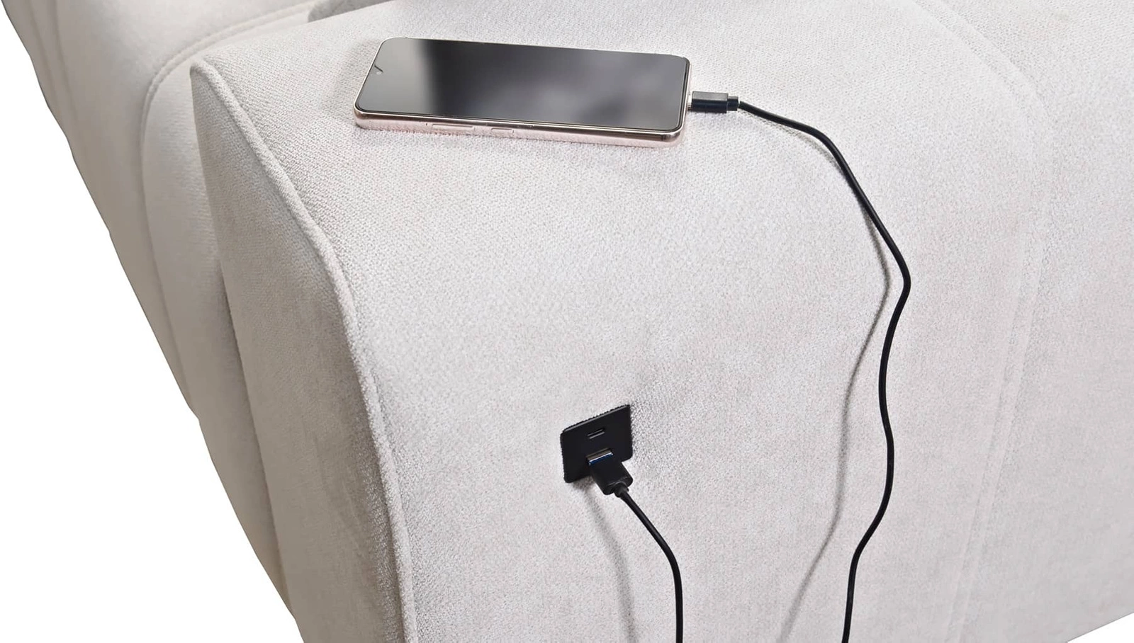 Dodatki tego mebla, które docenią wszyscy użytkownicy to dwa pojemniki na pościel, funkcja spania oraz gniazdo ładowania USB w boczku narożnika.