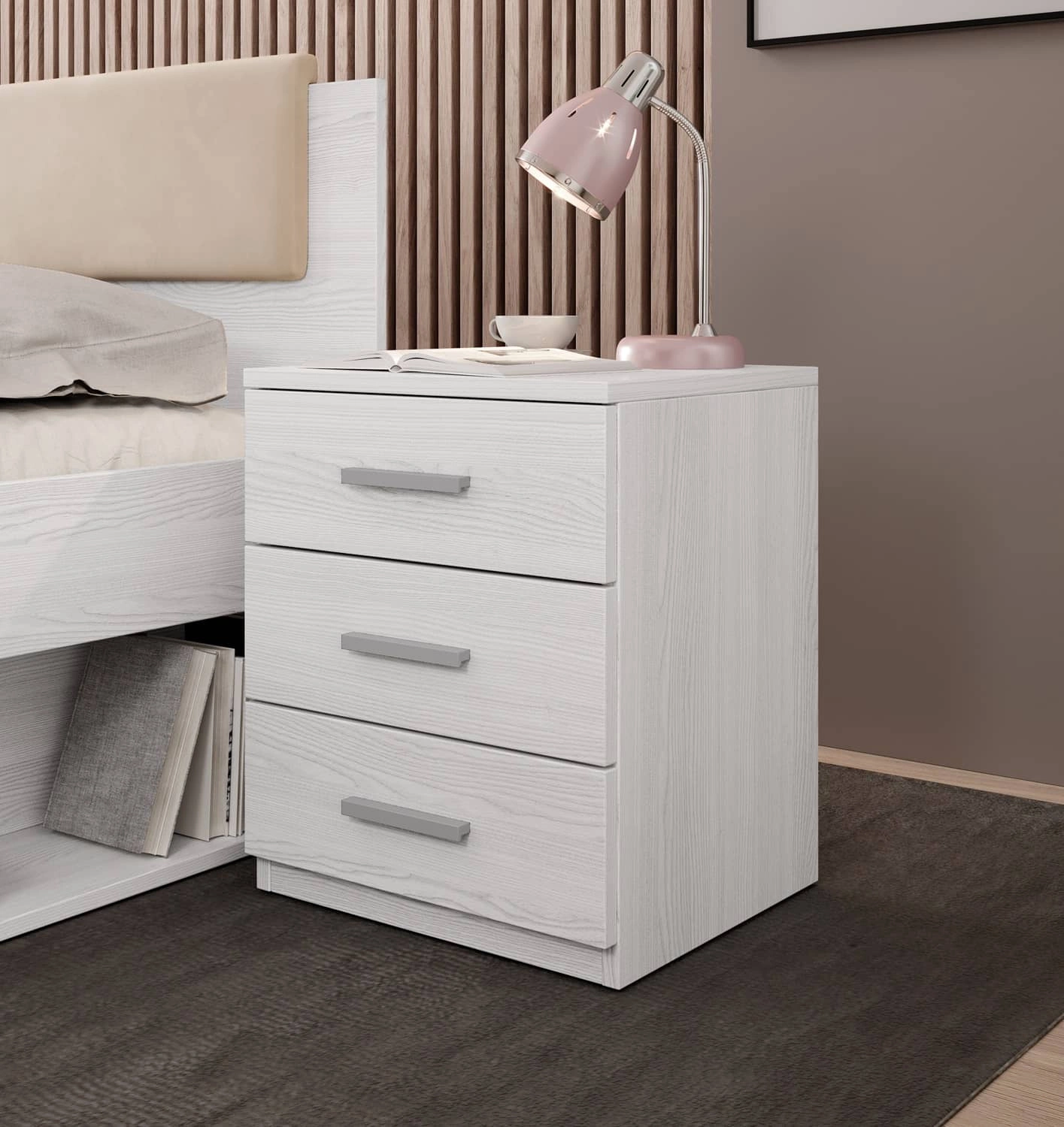 Szafka nocna z szufladami Galaxy w kolorze abisko ash to stylowy mebel, który idealnie wkomponuje się do każdej sypialni.