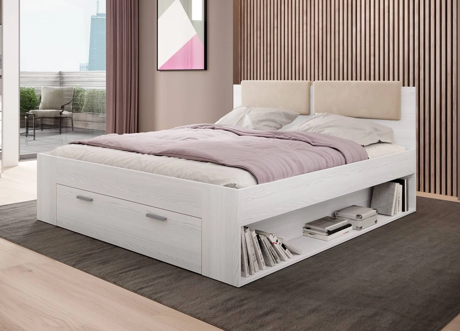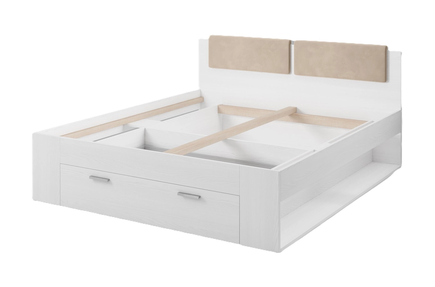 Łóżko z szufladą Galaxy 140x200 cm abisko ash to idealne łóżko do sypialni z częściowo tapicerowanym zagłówkiem