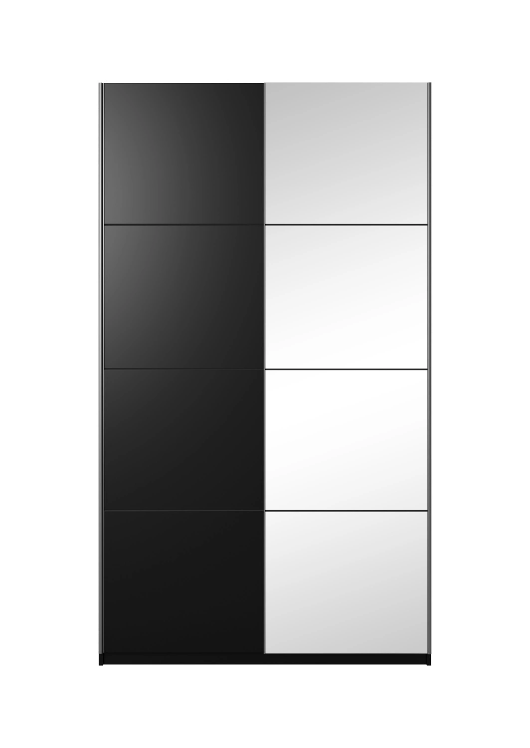 Mebel skonstruowany jest z 2 drzwi. Szafa przesuwna gwarantuje komfortowe i bezproblemowe korzystanie oraz trwałość całego mebla przez wiele lat użytkowania. Klasyczny czarny kolor sprawia, że szafa na ubrania z powodzeniem sprawdzi się jako szafa do pokoju dziecięcego, szafa do sypialni lub jako szafa do przedpokoju. Szafa z lustrem optycznie powiększy pomieszczenie.