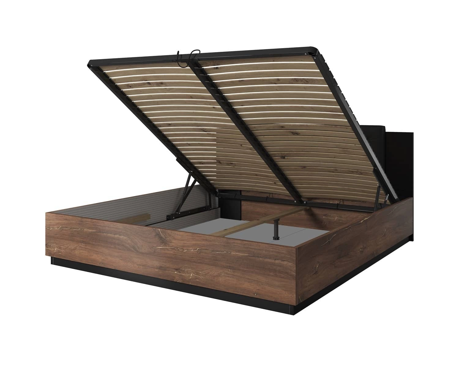 Łóżko z pojemnikiem Sigma 140x200 cm w kolorze dąb flagstaff / czarny z miedzianą wstawką to prosty i elegancki design, który idealnie wpisuje się w obecne trendy wnętrzarskie.