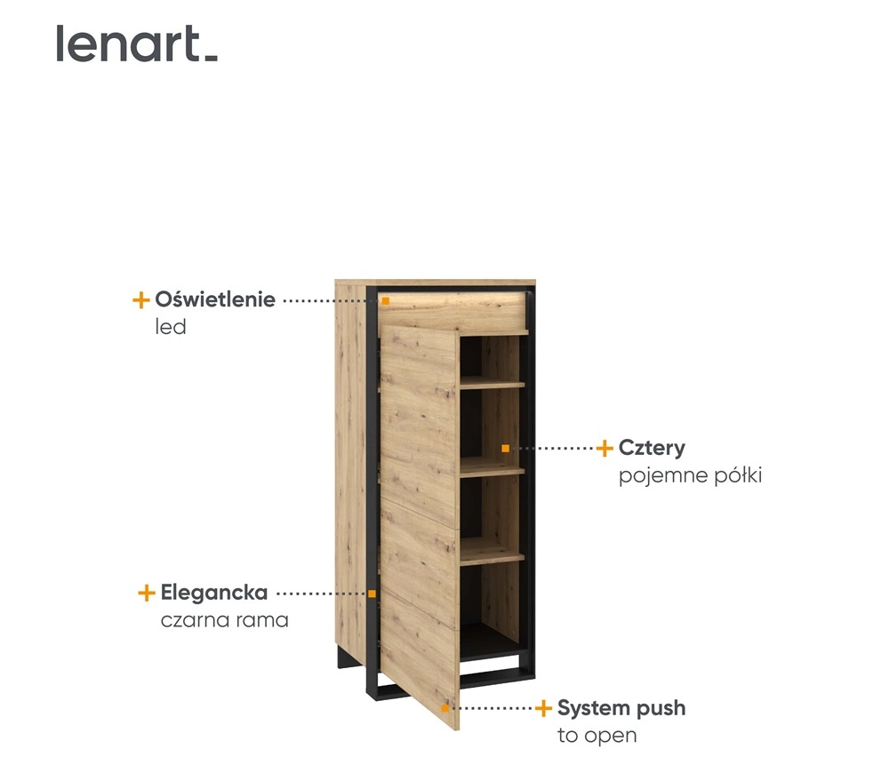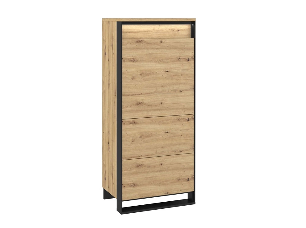 Komoda wysoka Quant 60 cm dąb artisan / czarny nowoczesny design komoda z oświetleniem LED system otwierania drzwi push to open