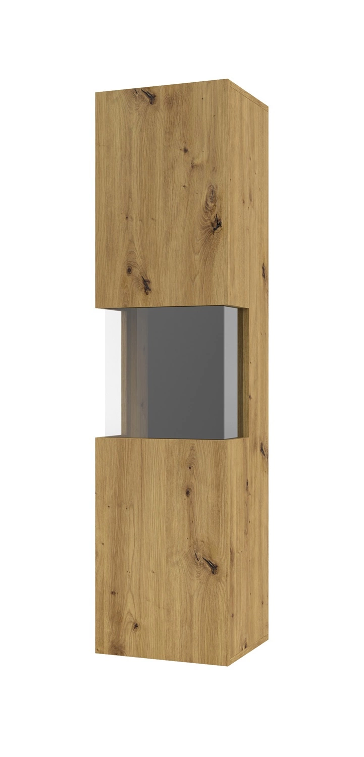 Witryna Ava 36 cm dąb artisan / czarny elegancka witryna do salonu z możliwością powieszenia prosta bryła idealna do każdego wnętrza