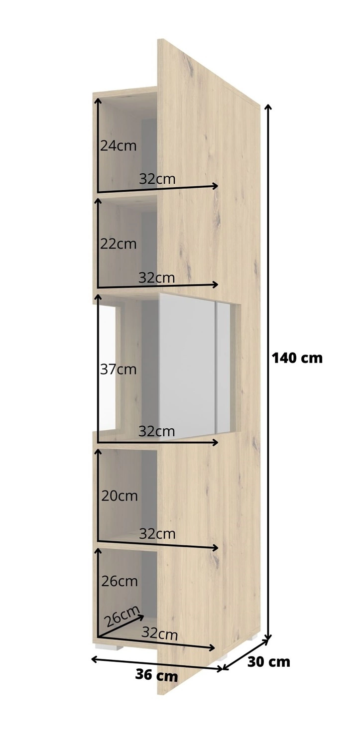 Witryna Ava 36 cm w kolorze dąb artisan / czarny to nowoczesny design mebla, który stanie się stylowym wykończeniem wnętrza.