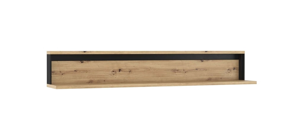 Zestaw mebli Quant dąb artisan / czarny designerska meblościanka w stylu loftowym oświetlenie LED trójwymiarowy charakter frontów