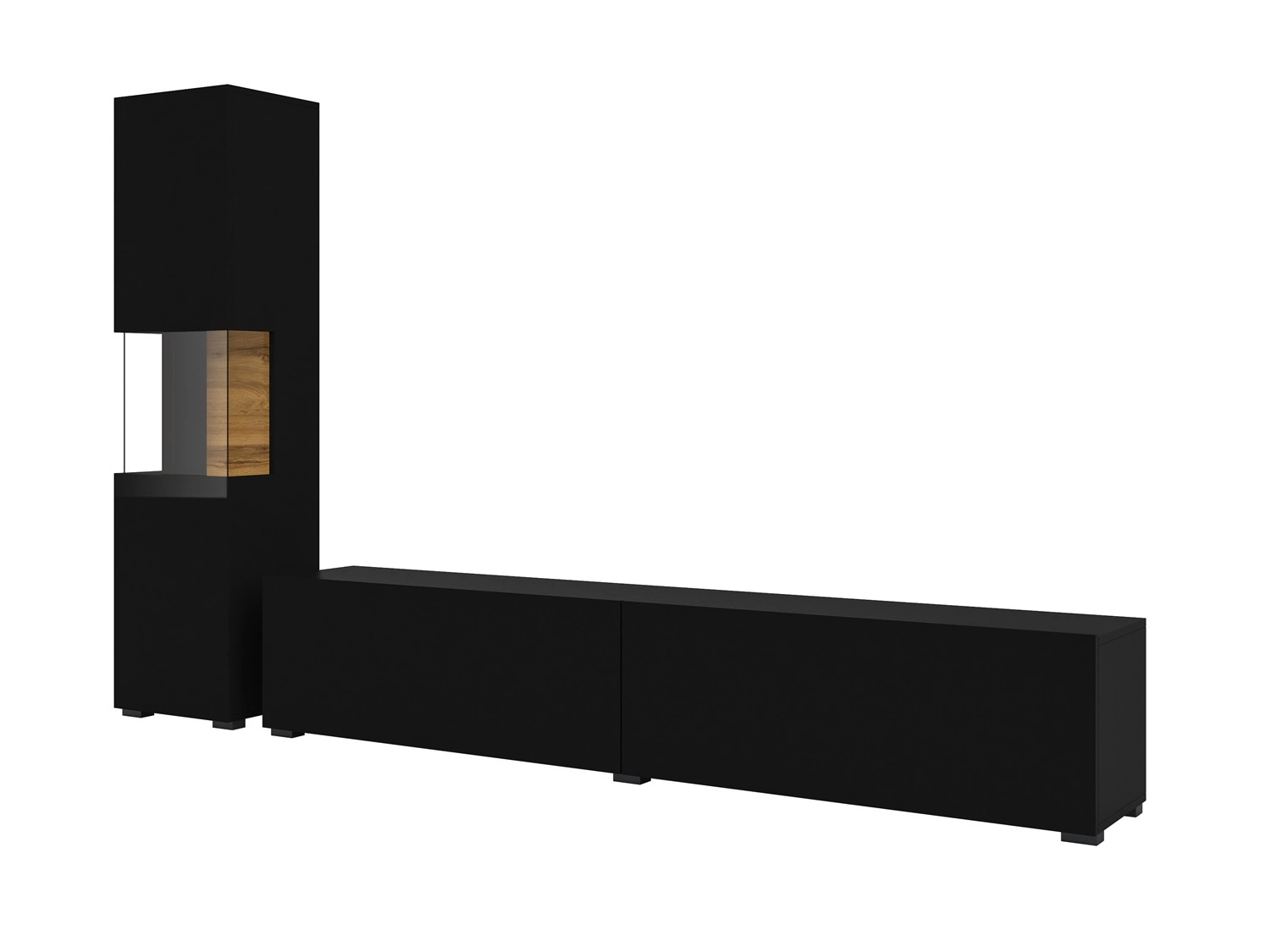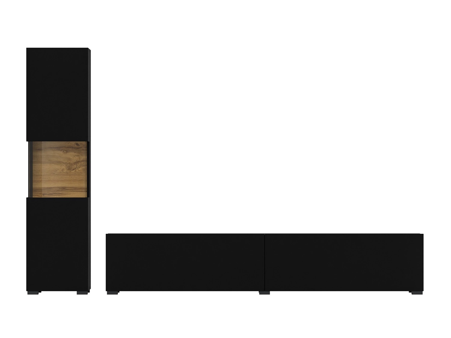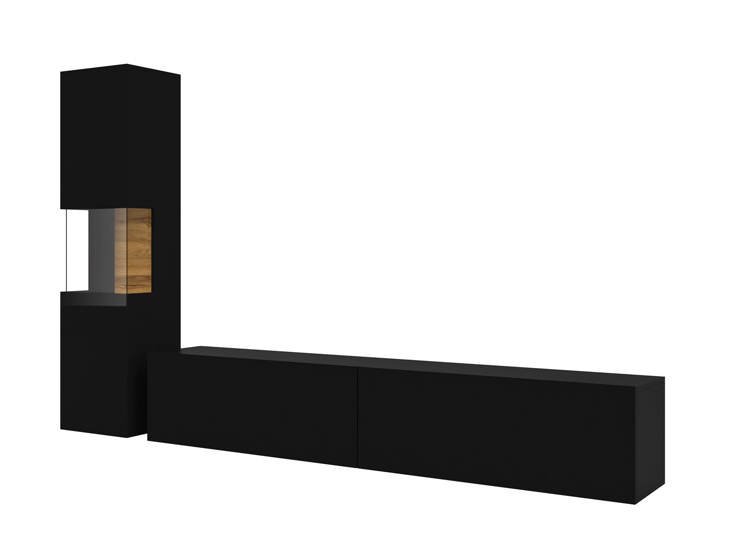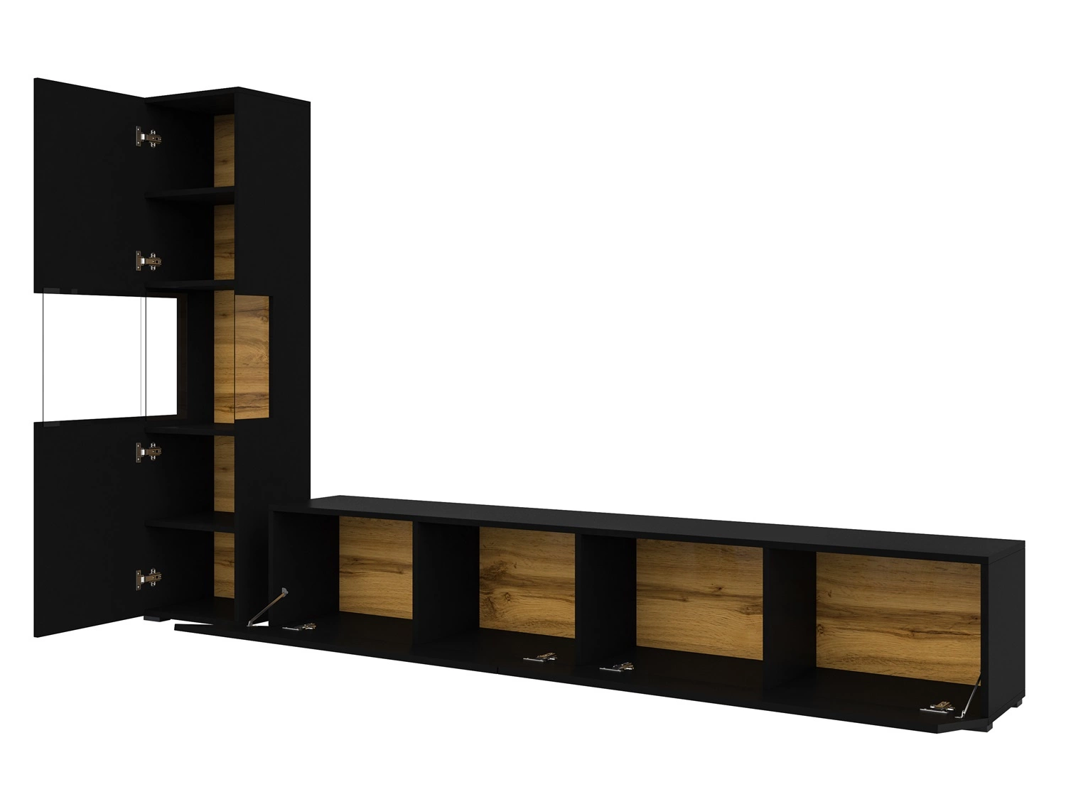 Meblościanka Ava w kolorze czarny / dąb wotan to nowoczesny design mebli, które staną się stylowym wykończeniem wnętrza.