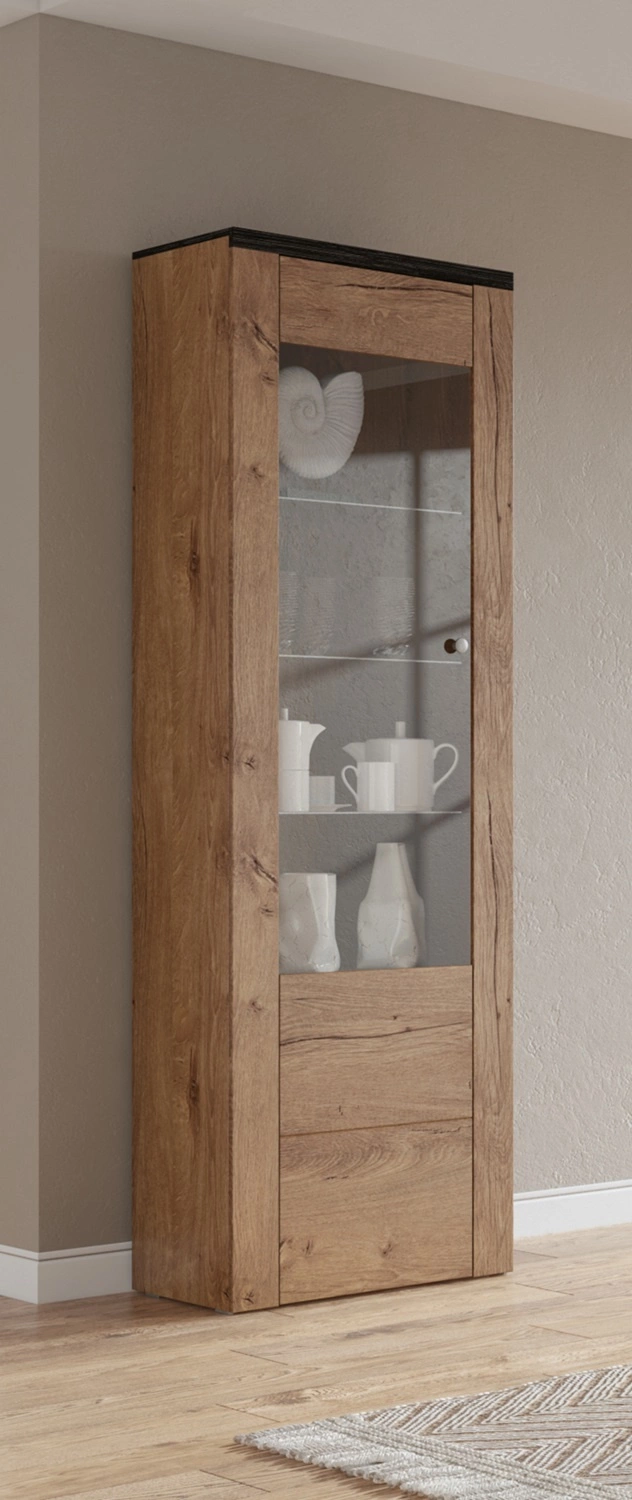 Witryna Larona 65 cm w kolorze dąb lefkas / touchwood to nowoczesny design mebla, który stanie się stylowym wykończeniem wnętrza.