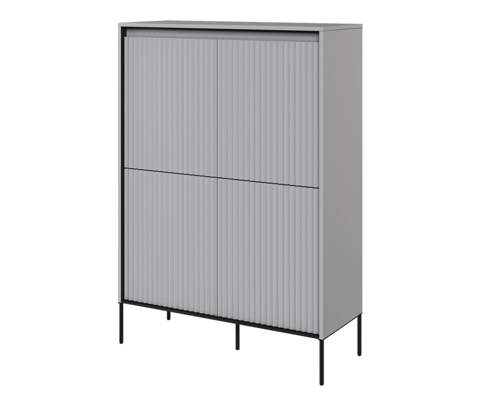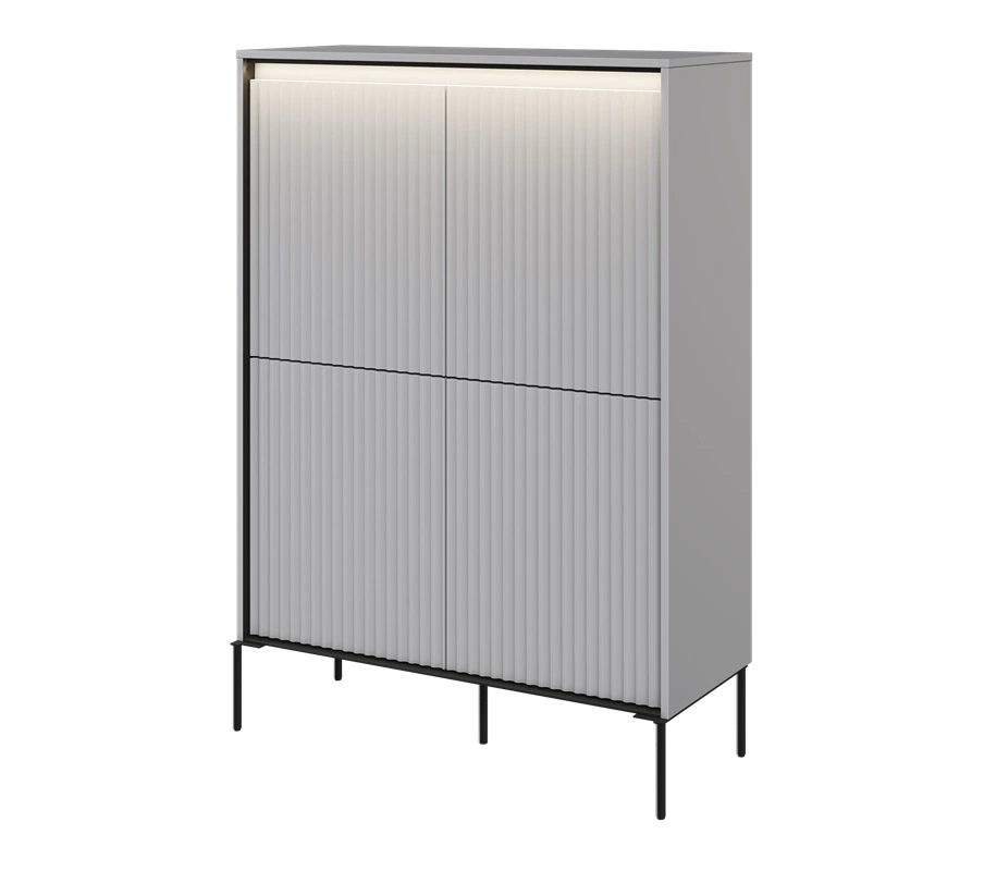 Komoda wysoka Trend 98 cm szara elegancka i stylowa komoda o wyjątkowym charakterze ryflowane fronty z oświetleniem LED