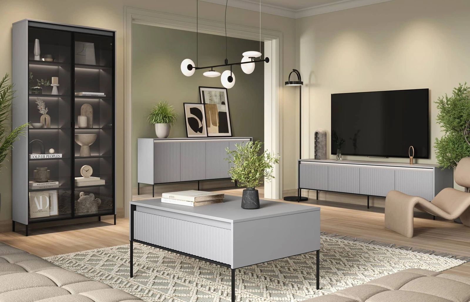 - Komoda wysoka Trend łączy w sobie funkcjonalność z wyjątkowym designem. Eleganckie ryflowanie frontów uwydatnia subtelne oświetlenie ledowe. Unikalne wzornictwo mebla doda wnętrzu wyjątkowego charakteru oraz oryginalnego wyglądu.