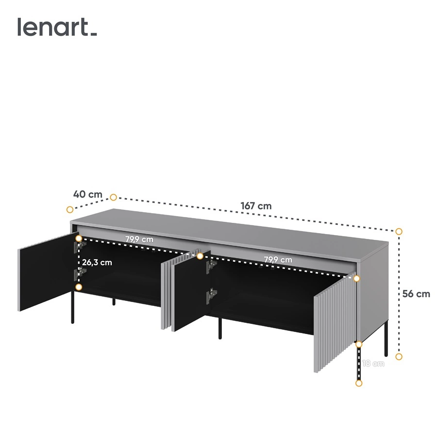 Szafka RTV Trend 167 cm szara praktyczna i stylowa szafka z ryflowanymi frontami wzbogacona o oświetlenie LED metalowa podstawa