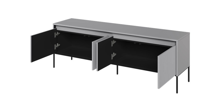 Szafka pod telewizor jest skonstruowana z 4 drzwi. Szafka gwarantuje komfortowe i bezproblemowe korzystanie oraz trwałość całego mebla przez wiele lat użytkowania. Modny szary świetnie odnajdzie się w subtelnych aranżacjach, dzięki czemu szafki RTV Trend świetnie sprawdzą się w przestronnych, jasnych wnętrzach w stylu nowoczesnym. Szafki RTV nowoczesne oraz szafki RTV industrialne o eleganckim wykończeniu idealnie dopasują się do każdej aranżacji.