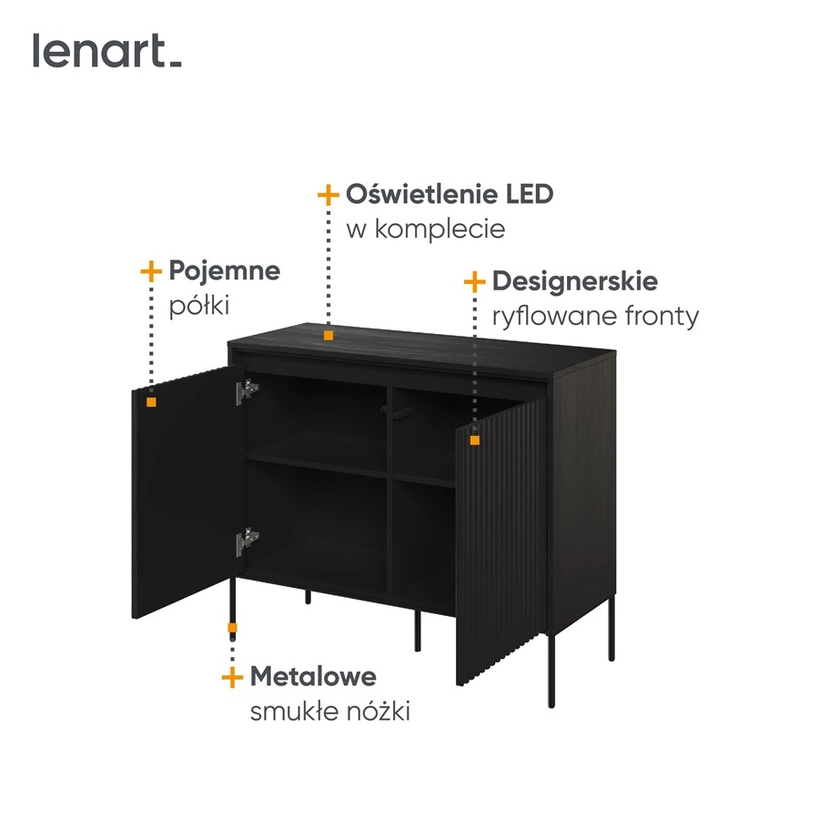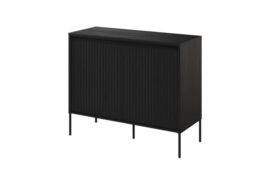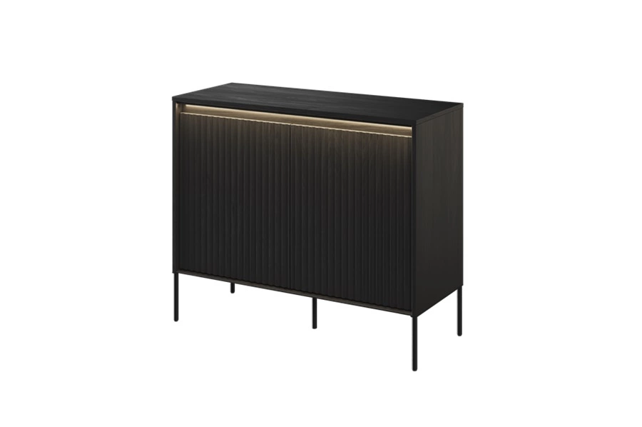 Komoda Trend 98 cm czarna funkcjonalna komoda do salonu o oryginalnym designie ryflowane fronty z subtelnym oświetleniem