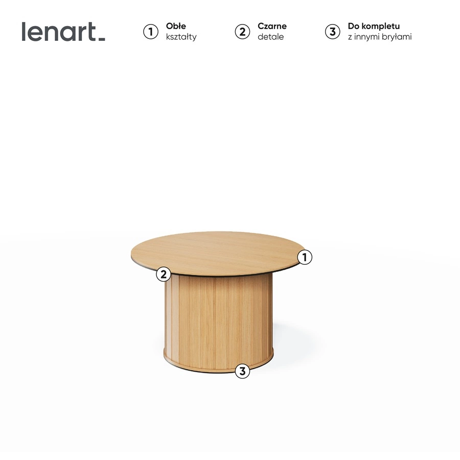 Stolik kawowy okrągły Rotto 80 cm dąb vincenza nowoczesny design solidna podstawa przyozdobiona dekoracyjnymi lamelami