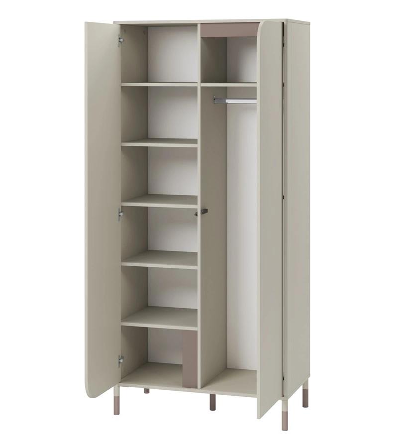 Minimalistyczny styl idealnie koresponduje z aktualnymi trendami wnętrzarskimi, dzięki czemu meble z kolekcji Harmony łatwo zaaranżować w pokoju nastolatka, salonie lub w sypialni. Szafę zaprojektowano w niezwykle użytkowy sposób, oferując dużo miejsca do przechowywania. Szafa Harmony dzieli się na część z drążkiem i część z półkami. Dzięki nowoczesnemu designowi, szafa dwudrzwiowa stanie się ważnym akcentem aranżacji wnętrza.