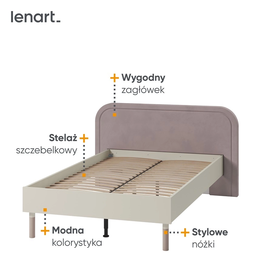 Łóżko Harmony 120x200 cm beżowy / truflowy komfortowe łóżko do pokoju młodzieżowego lub dziecięcego wygodny tapicerowany zagłówek