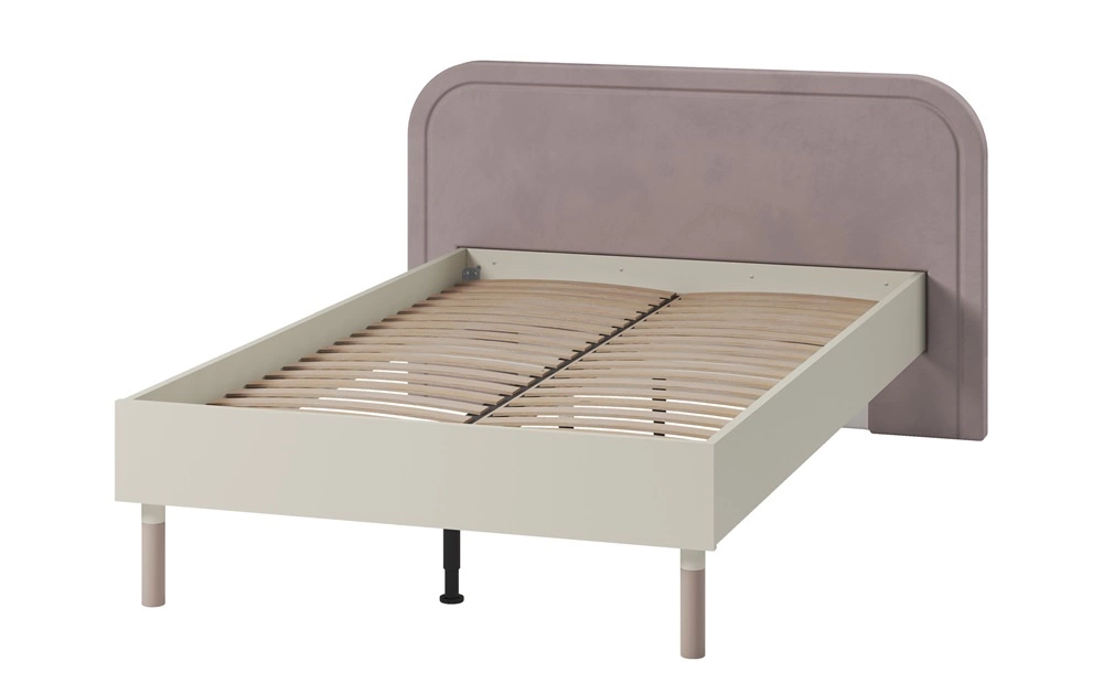 Konstrukcja łóżka została wsparta na wysokich, metalowych nogach w truflowym odcieniu. Rama łóżka wykonana została z wysokiej jakości płyty laminowanej o grubości 16mm, która charakteryzuje się odpornością na wpływ czynników zewnętrznych takich jak obicia, uderzenia i niefortunne zadrapania.